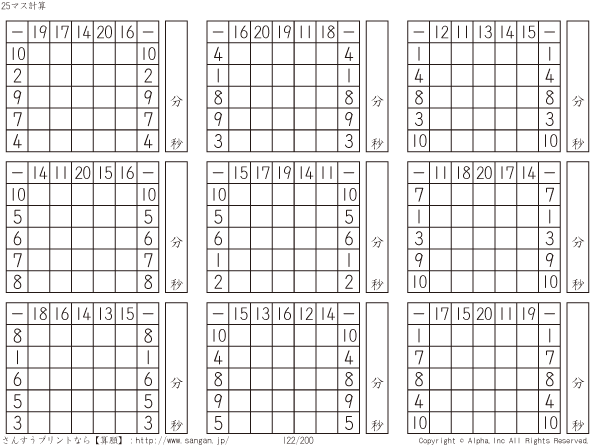 [10000印刷√] 25マス計算 引���算 226423-25マス計算 引き��
